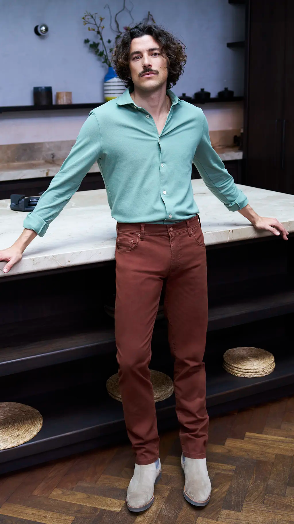A flair for fashion meets conscious fashion – modern, hand-finished denims made of durable organic cotton with embroidered stitching are just as indispensable as our sporty five-pocket designs with a high-quality micro structure and comfortable super stretch fabric. Our Move design is a must for a dynamic lifestyle. Featuring an integrated stretch waistband at the side and wonderfully soft fabric, these trousers guarantee maximum freedom of movement and perfect style! Our M|5 chinos are a relaxed and understated choice for any occasion. All M|5 trousers are FAIR & sustainably made in Europe!